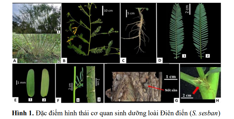 Các đặc điểm về hình thái cơ quan sinh dưỡng của loài Điên điển (S. sesban) được thể hiện ở Hình 1.