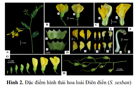 Các đặc điểm về hình thái và giải phẫu hoa của loài Điên điển S. sesban được thể hiện ở Hình 2.