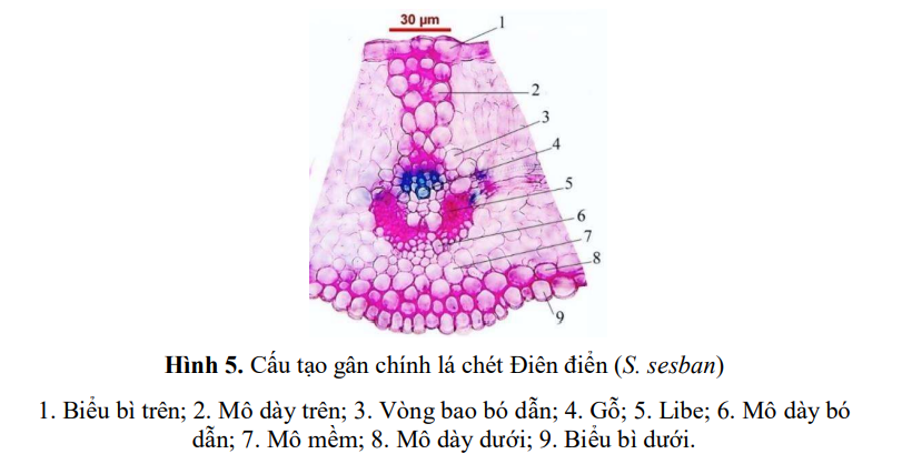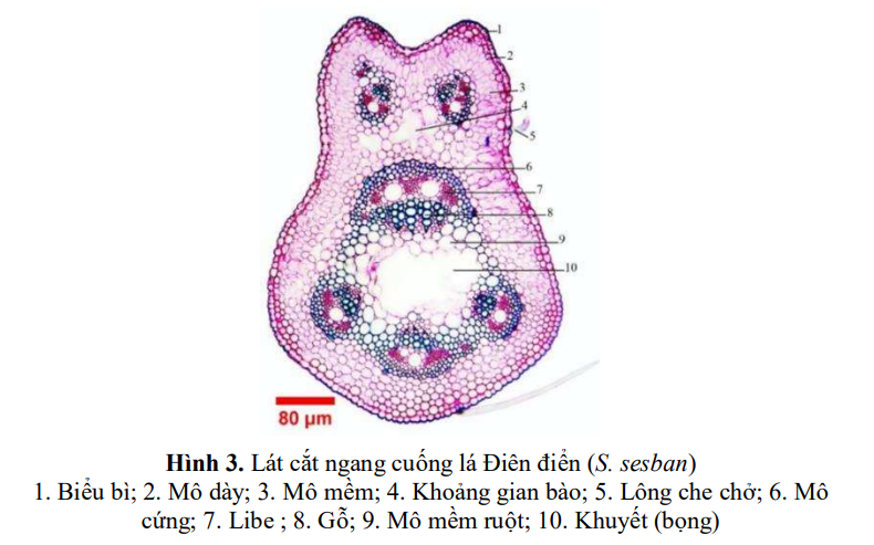 Cấu tạo giải phẫu cuống lá chính Điên điển (S. sesban)