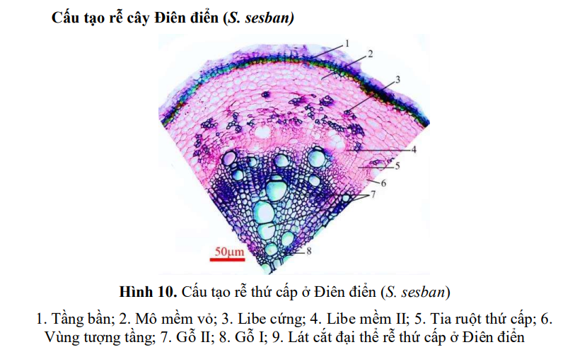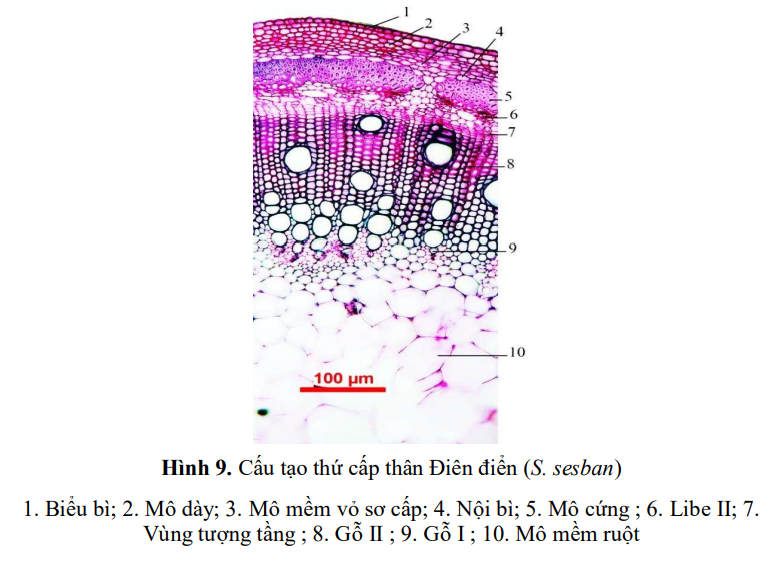 Cấu tạo thân thứ cấp ở Điên điển được thể hiện qua Hình 9.