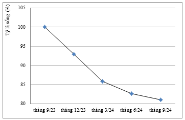 Hình 6. Tỷ lệ sống của Hải sâm đen lưu giữ tại Đầm Báy (9/2023 - 9/2024)