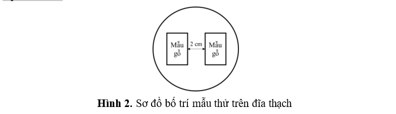 - Dùng kẹp inox gắp các thanh gỗ đã khử trùng đặt vào các đĩa thạch đã cấy nấm mốc, mỗi đĩa đặt 2 mẫu gỗ cùng loại, các mẫu cách nhau 2 cm. Mỗi thử nghiệm lặp lại 5 lần.
