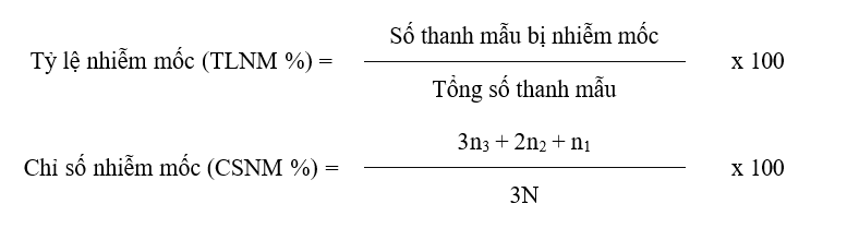 - n3: Số mẫu cấp 3 – có > 60 % diện tích bề mặt mẫu bị nhiễm mốc;