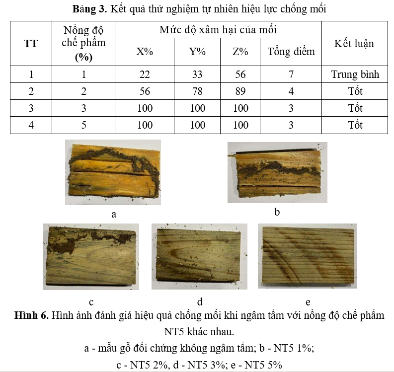 ĐÁNH GIÁ HIỆU LỰC PHÒNG CHỐNG NẤM MỐC, MỐI CHO GỖ CỦA CHẾ PHẨM NT5