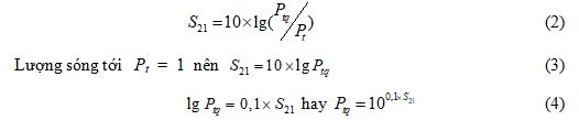 Kí hiệu sóng tới là Pt, sóng truyền qua là Ptq. Mối quan hệ giữa Pt , Ptq và S21 theo công thức (2):