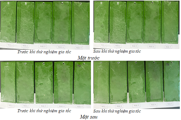 Hình 2. Hình ảnh mẫu composite trước và sau khi thử nghiệm gia tốc