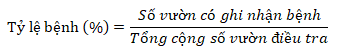Tỷ lệ bệnh tại các vườn được tính theo công thức: