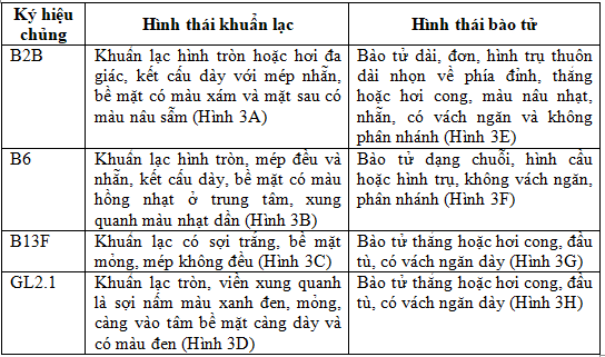 Bảng 3. Đặc điểm hình thái của 4 chủng nấm gây bệnh thối quả