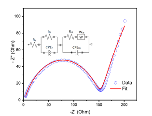 Hình 7. Phổ tổng trở điện hóa và thành phần mạch điện của vật liệu NMC9.5.5-PR.