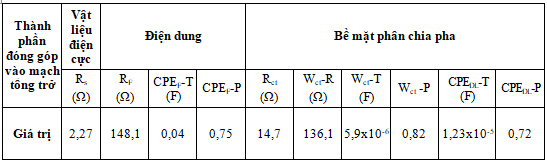 Bảng 1. Giá trị các thành phần trong mạch điện tương đương