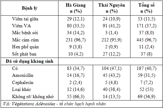 This study was conducted in 2020-2021 to investigate several epidemiological factors and parents' knowledge of antibiotic use in children in Thai Nguyen and Ha Giang.