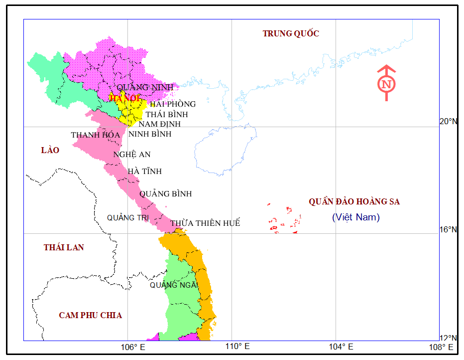 Ghi chú: QN: Quảng Ninh, HP: Hải Phòng, TB: Thái Bình, NĐ: Nam Định, NB: Ninh Bình, TH: Thanh Hóa, NA: Nghệ An, HT: Hà Tĩnh, QB: Quảng Bình; QT: Quảng Trị, TTH: Thừa Thiên Huế, TB: Trung bình.