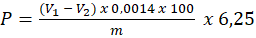 Trong đó: P là hàm lượng protein tổng số; V1 là thể tích NaOH 0,1N chuẩn độ mẫu phân tích; V2 là thể tích NaOH 0,1N chuẩn độ mẫu trắng.