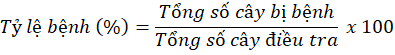 Tỷ lệ bệnh: là số lượng cá thể bị hại tính theo phần trăm (%) so với tổng số các cá thể điều tra trong quần thể, được tính theo công thức: