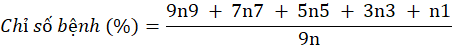 Chỉ số bệnh: là đại lượng đặc trưng cho mức độ bị hại của cây trồng được biểu thị bằng phần trăm (%), được tính theo công thức: