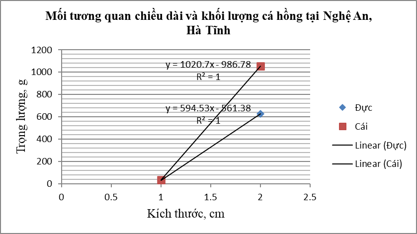 Kích thước chiều dài giữa cá thể cái và cá thể đực tương đương nhau tuy nhiên trọng lượng cá thể cái lớn hơn cá thể đực, thể hiện ở Hình 5.