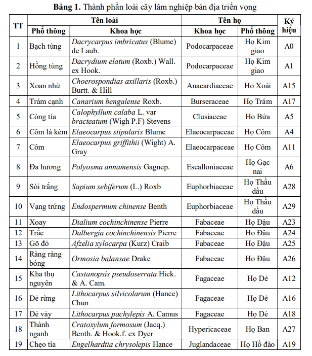 3.1. Thành phần các loài cây lâm nghiệp bản địa triển vọng