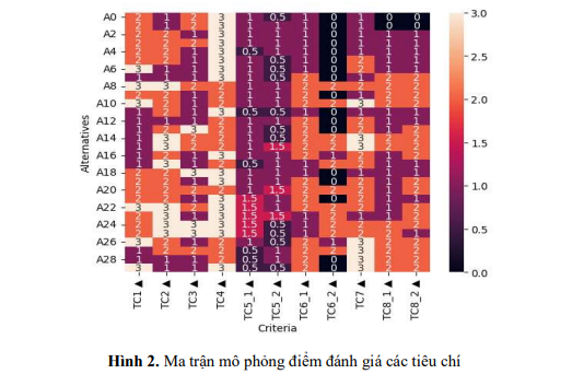 Dữ liệu lượng hóa các tiêu chí chọn loài được tổng hợp qua thuật toán Machine learning/package scikit-criteria. Ma trận điểm đánh giá được thể hiện tại Hình 2.