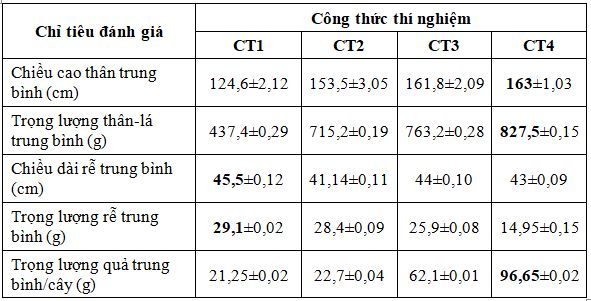3.2.2. Đánh giá hiệu quả qua sinh trưởng của cây cà chua