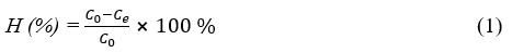 Hiệu suất hấp phụ (H %) được tính theo công thức: