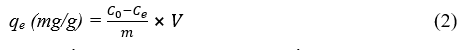 Dung lượng hấp phụ qe (mg/g) được tính theo công thức: