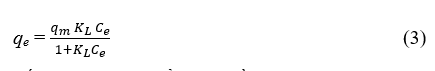 Trong đó qe là dung lượng hấp phụ tại thời điểm cân bằng (mg/g); qm là dung lượng hấp phụ cực đại (mg/g); KL là hằng số hấp phụ Langmuir (L/mg).