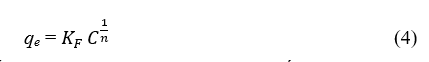Trong đó KF là hằng số hấp phụ Freundlich (L/g); 1/n là chỉ số Freundlich.
