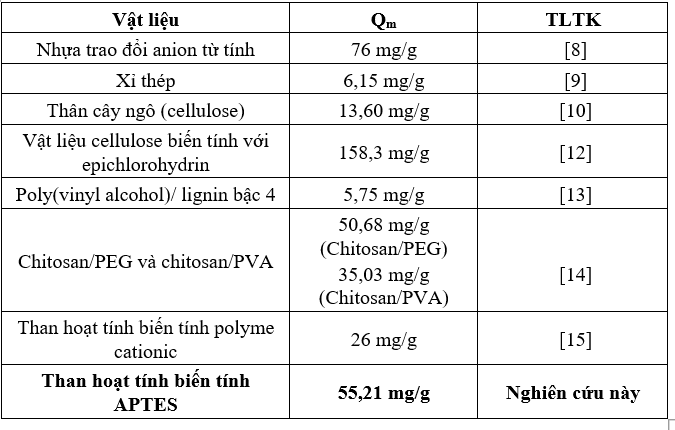 Bảng 2. Dung lượng hấp phụ NO3- của một số loại vật liệu trong các nghiên cứu khác nhau