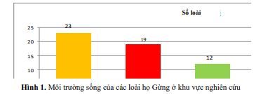 Về sinh cảnh Từ số liệu Bảng 1 và Hình 1 chỉ ra, trong các môi trường sống đã gặp các loài thuộc họ Gừng ở khu vực nghiên cứu sinh cảnh rừng bị tác động (a) có tỷ lệ cao nhất với 23 loài (chiếm 76,7%), điều này cũng hợp lý bởi các loài cây họ Gừng chủ yếu ưa độ ẩm cao và chúng phát triển tốt hơn ở điều kiện chiếu sáng thấp, kế đến là vườn nhà (e) với 19 loài (chiếm 63,3%); thảm cây bụi (c) với 12 loài (chiếm 40,0%), rừng ít bị tác động (b) và ven suối (d) với 8 loài (chiếm 26,6%). Một loài có thể phân bố ở 1 hoặc nhiều sinh cảnh sống khác nhau.