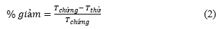 Công thức tính phần trăm giảm thời gian trễ đáp ứng đúng so với lô chứng: