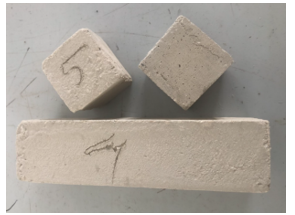 - The flexural strength was evaluated using TCVN 3121-11:2003 with a sample size of (40 x 40 x 160) mm. The compressive strength using a sample size of (40 x 40 x 40) mm. The test was conducted using an automated hydraulic compression system, TYA-2000. Figure 1 shows the experimental samples.