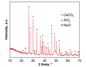 Figure 2 shows the X-ray diffraction (XRD) spectrum of coral sand, which indicates that it mainly consists of CaCO3, with a small amount of halite crystals present. This aligns with the details given in Table 1.