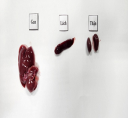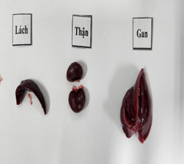 Đánh giá ảnh hưởng của viên nang cứng Probiotic EntVN 500 mg tới sự thay đổi mô bệnh học gan, thận. Quan sát đại thể bằng mắt thường và dưới kính lúp có độ phóng đại 25 lần nhận thấy: màu sắc, hình thái của gan, lách và thận ở 2 lô trị không khác so với lô chứng (Hình 1).