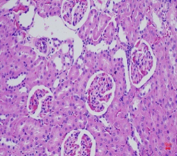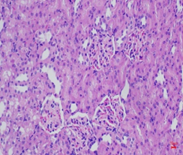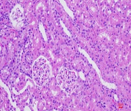 Hình thái vi thể thận, lách chuột ở cả ba lô đều bình thường, không có sự khác biệt so với hình ảnh vi thể thận, lách chuột ở lô chứng. Các tế bào ống thận bắt màu xanh thẫm. Cấu trúc các vùng chức năng thận, lách bình thường (Hình 3, 4).