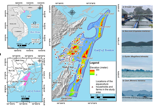 In November 2024, the research team conducted a field survey using sociological survey methods in the Bai Tu Long Bay area, focusing on aquaculture activities. The objective of the sociological survey in this study was to collect basic information on aquaculture activities, including location, scale of aquaculture, characteristics of aquaculture species, investment and operating costs, and economic efficiency for local people. In addition, the survey investigated aquaculture experiences, difficulties, and challenges that local people face in the profession. Primary data were collected through direct interviews with 51 typical households in the study area via a detailed questionnaire. These households were selected based on criteria such as aquaculture location, aquaculture species, production methods and scale, and the level of investment in equipment. The collected information includes aquaculture technical characteristics, financial costs, and production efficiency according to the actual assessment of people at each farm.