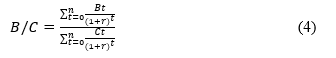 The benefit‒cost ratio (B/C) is an index used to analyse the benefit‒cost relationship between the total relative costs and certain benefits of a farm.