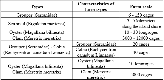 Table 2. The characteristics of the farm types surveyed in Bai Tu Long Bay, Quang Ninh Province