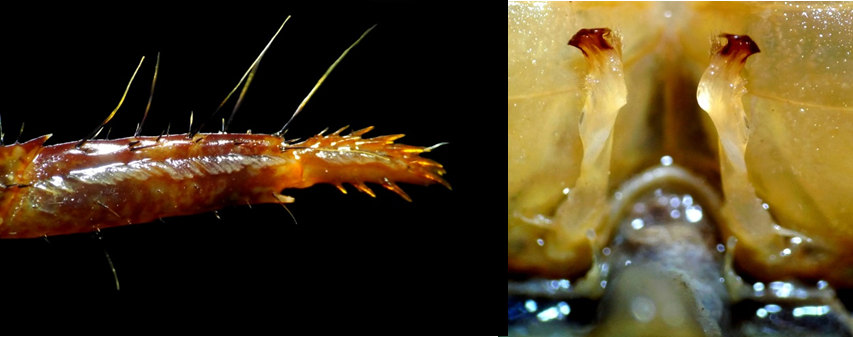 A - P. peninsulare; B - Mặt trước của đốt bàn ở càng;