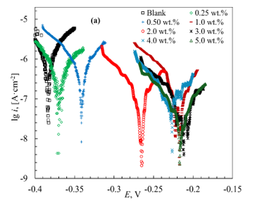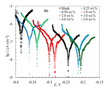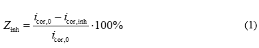 where icor,0 and icor,inh are the corrosion current densities in the blank (control) experiment and the presence of the inhibitor, respectively.
