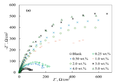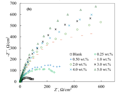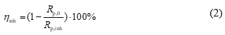 where Rp,0 and Rp,inh are the polarization resistances in the control experiment and the presence of the inhibitor, respectively.
