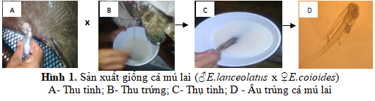 Trứng cá mú lai trải qua nhiều lần phân cắt, thời gian nở 18h30’. Kết quả sản xuất giống thu được 15 342 ấu trùng cá mú lai (♂ E. lanceolatus x ♀ E. coioides) nở ra từ 18 050 trứng thụ tinh, đạt tỷ lệ nở 80-85%.