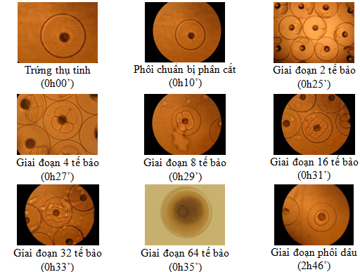 Thu mẫu liên tục cách nhau 10 phút/lần, dùng pipet nhựa hút mẫu ngẫu nhiên cho vào các đĩa Peptri, quan sát trực tiếp và chụp ảnh qua đĩa Peptri dưới kính hiển vi soi nổi ở độ phóng đại 10X để đánh giá sự phát triển của phôi và ảnh được chụp bằng máy ảnh kỹ thuật số. Các chỉ tiêu nghiên cứu được ghi nhận tại mỗi lần thu mẫu cho đến khi kết thúc thí nghiệm.
