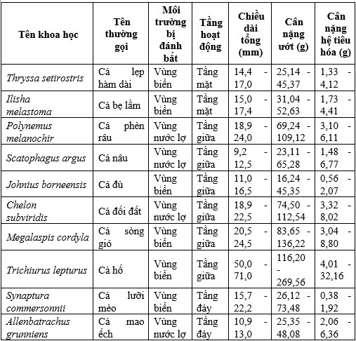 Bảng 1. Thông tin chi tiết các mẫu cá