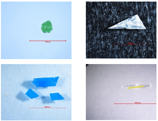 Hình 2. Một số vi nhựa quan sát được trong ống tiêu hóa của mẫu cá