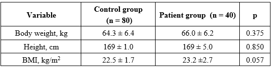 Statistical analyses were conducted using StatSoft Statistica 12.0 for Windows, Microsoft Excel 2016 and Origin 8.5. Parametric data are presented as mean ± standard deviation (M ± SD). Differences in parametric variables were assessed with Student’s t-test. For nonparametric data, the Kruskal–Wallis test (two-sample procedure) and the Mann–Whitney U test were used. A two-sided p < 0.05 was considered statistically significant.