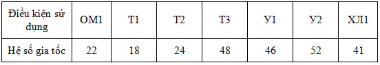 Bảng 1. Điều kiện sử dụng của vật liệu và hệ số gia tốc tương ứng