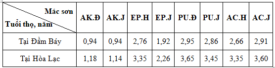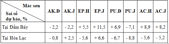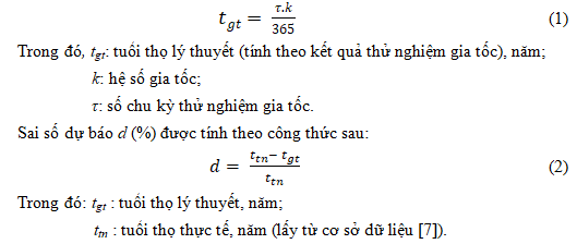 Áp dụng công thức (2) để tính toán sai số dự báo của tuổi thọ lý thuyết so với tuổi thọ thực tế (theo thử nghiệm tự nhiên). Kết quả được trình bày trong Bảng 7.
