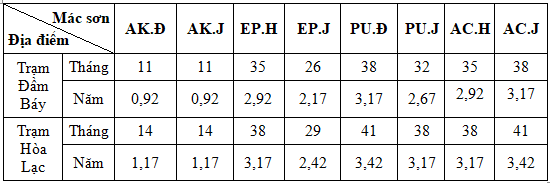 Bảng 6. Tuổi thọ lý thuyết của các mác sơn khi sử dụng tại Đầm Báy và Hòa Lạc