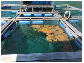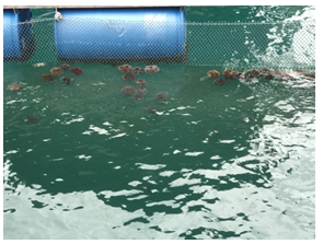Hình 2. Lồng lưới thuần dưỡng nhum sọ trên biển