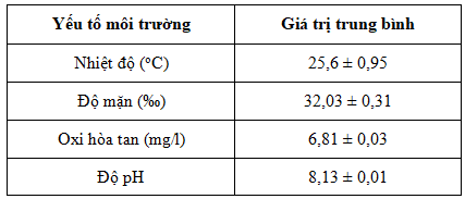 Bảng 1. Các yếu tố môi trường tại biển Đầm Báy